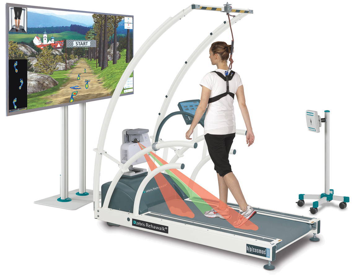 • 트레드밀 위에 발자국을 표시해주는 프로젝터를 사용하여 보행 훈련